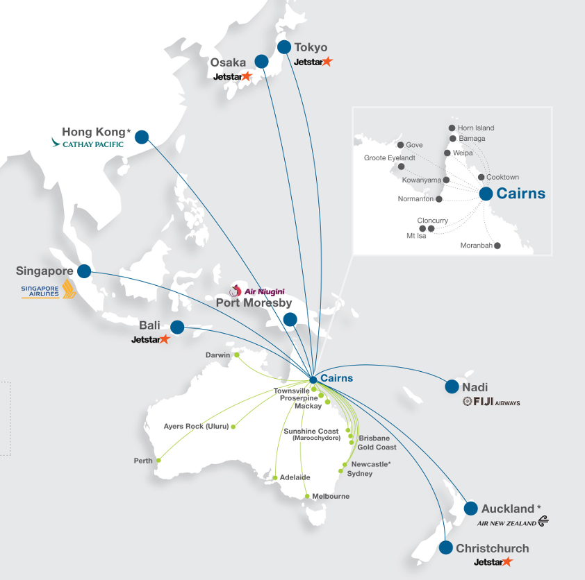 The city serves as the central hub for Tropical North Queensland and acts as the entry point to both the Great Barrier Reef and the Wet Tropics World Heritage Rainforest.